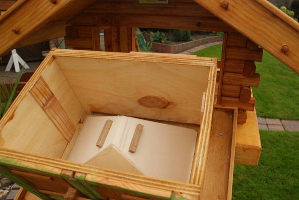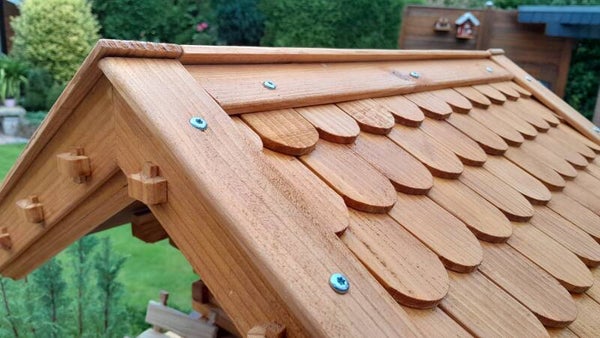 Bei der Herstellung haben wir Wert auf hochwertiges Lärchenholz und eine gute Verarbeitung gelegt. Das Holz aus heimischen Wäldern ist durch seine Witterungsfestigkeit, seine schöne Färbung und seine Härte besonders für den Bau solcher Vogelhäuser geeignet. Das Haus ist zweimal geölt und gewachst. Der Kiefernsockel mit leicht gefärbter Holzschutzfarbe gestrichen.